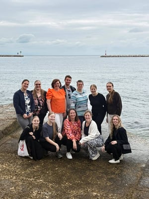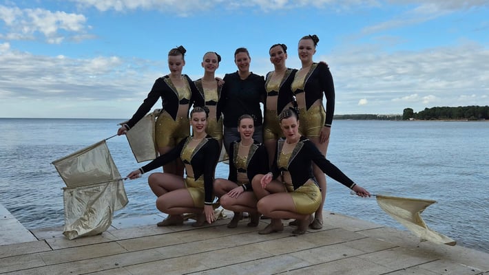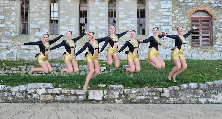Op dinsdag 21 oktober begon ons avontuur naar Kroatië. We ontmoeten elkaar bijna allemaal op Schiphol en vlogen vanaf daar naar Zagreb. Na een snelle vlucht landen we al in Kroatië. Helaas is het nogal regenachtig en mogen we niet hard rijden op de snelweg. De autorit naar Porec duurt dus nog best een tijdje. We komen 's avonds laat maar gelukkig veilig aan in het hotel waar Annemiek en Tim ons al opwachten. De volgende ochtend vertrekken we richting de zaal. De muziektest staat gepland. De vloer is spekglad en even wennen maar de hal ziet er verder ruim uit. 's Middags hebben we een middagje vrij en kunnen we even Porec verkennen. Er wordt gesmuld van een ijsje en daarna maken we ons op voor de opening van de EC.